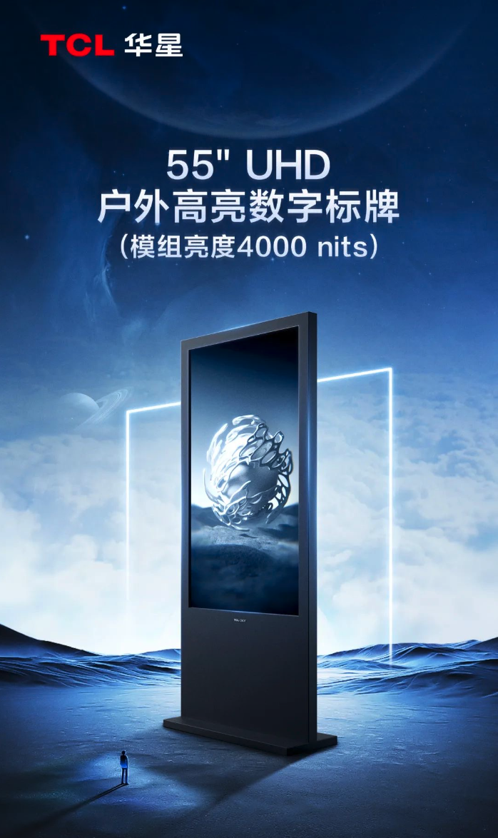 55吋 UHD 户外高亮数字标牌具备超高亮度、高稳定性、长寿命等特点,能应对户外严苛的温度环境、耐受太阳光直接照射,同时支持全天24小时不间断运行。特别是其采用的TCL利来w66业内首发的TSS像素设计,可实现业界领先的高穿透规格(Tr%=6.0%),同时该展品采用了高稳定性的TFT器件和GOA电路,极大提升了产品稳定性,液晶温度支持-30~80℃,可高度适配全户外商业、公共交通、指示牌等新型商用场景。